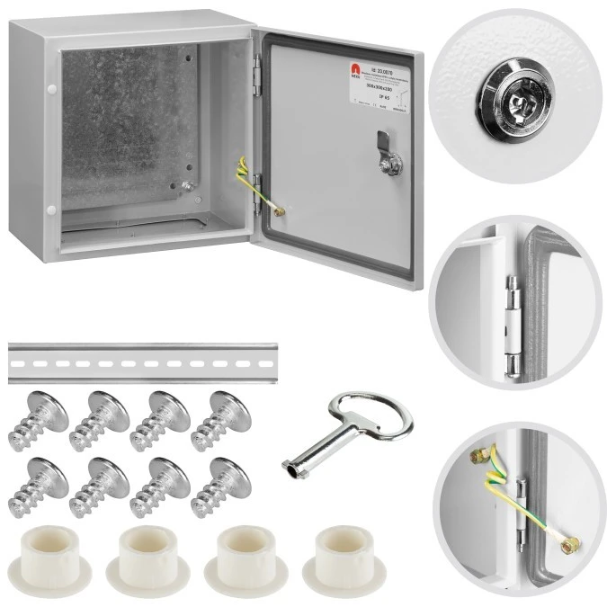 6. Obudowa hermetyczna rozdzielnia metalowa z płytą montażową 300x300x150 IP65 natynkowa NEKU 151.08