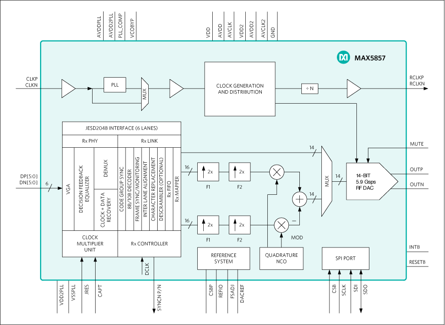 16-Bit, 5.9Gsps Interpolating and Modulating RF DAC with JESD204B Interface