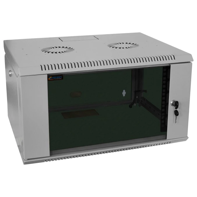 Szafa wisząca RACK 19" 6U 450mm drzwi szklane szara COM-BOX MIRSAN