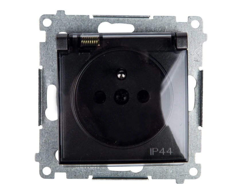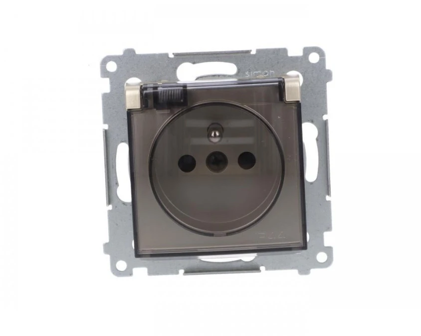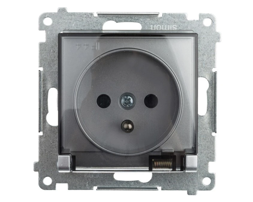 Simon 54 Gniazdo bryzgoszczelne z/u IP44 z klapką transparentną bez uszczelki antracyt DGZ1BUZ.01/48A