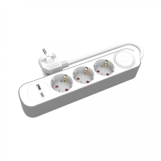 Przedłużacz stały 3x z włącznikiem oraz gniazdami USB A USB C 1,5m schuko PS-370SWS+USBA+USBC/1,5 E W-30006