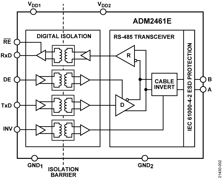 500 kbps, 5.7 kV RMS, Signal Isolated Half Duplex RS-485 Transceiver with ±15 kV IEC ESD