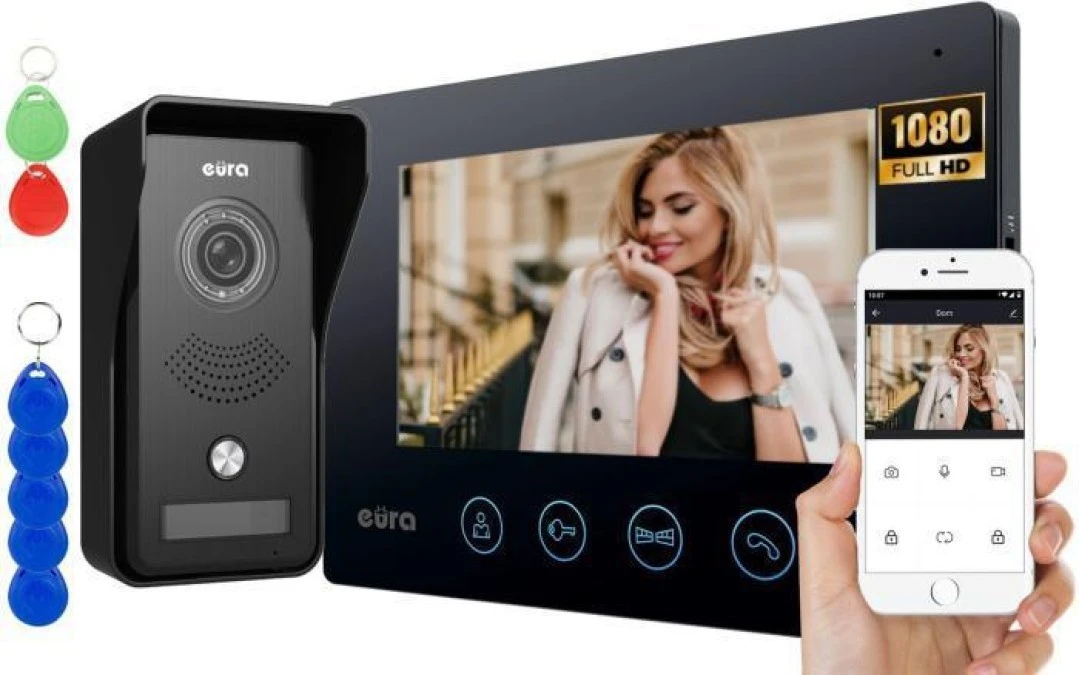 Wideodomofon "EURA" VDP-00C5 czarny monitor 7'' WiFi kamera 960p RFID szyfrator C51A100 EURA-TECH