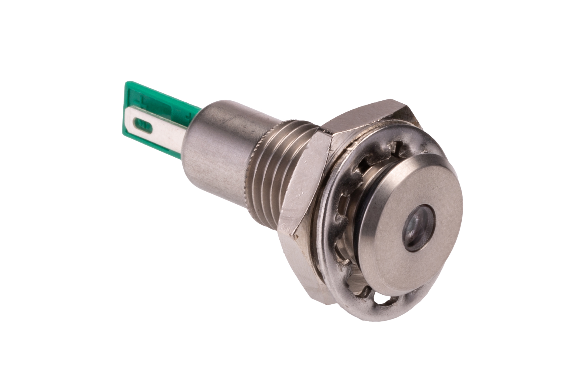4. Lampka kontrolna do montażu panelowego 12V dc, zielona 12.2mm LED Końcówka lutownicza Bulgin 175.68