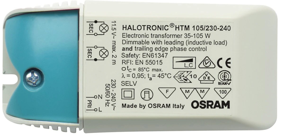 Zasilacz Halogenowy Regulator Fazowy Ściemniacz Fazowy 35-105W 11.3V OSRAM Compact