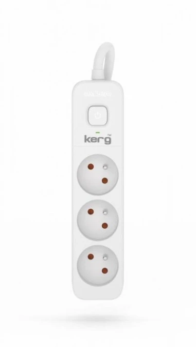 Urządz. zas.-zabezpiecz. KERG z wyłącznikiem-4 gniazda-3USB-biało-szary-3m-16A-H05VV-F-3x1,5mm2