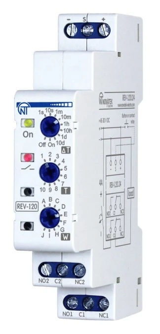 Przekaźnik czasowy wielofunkcyjny 24V DC 0,1s-10dni REV-120-24V