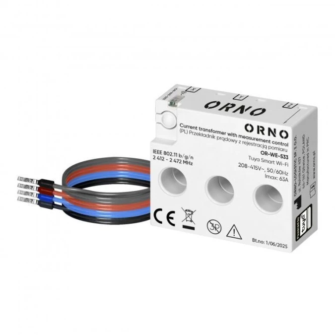 Przekładnik prądowy trójfazowy z rejestracją pomiaru, max. 440V/63A, Tuya Smart Wi-Fi,OR-WE-533