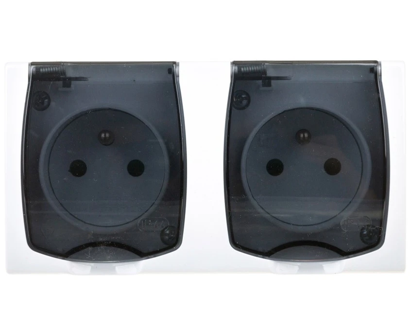 9. MADERA Gniazdo hermetyczne podwójne z/u IP44 z przesłonami klapka przezroczysta białe GNH-2NZP/00/d 27.92
