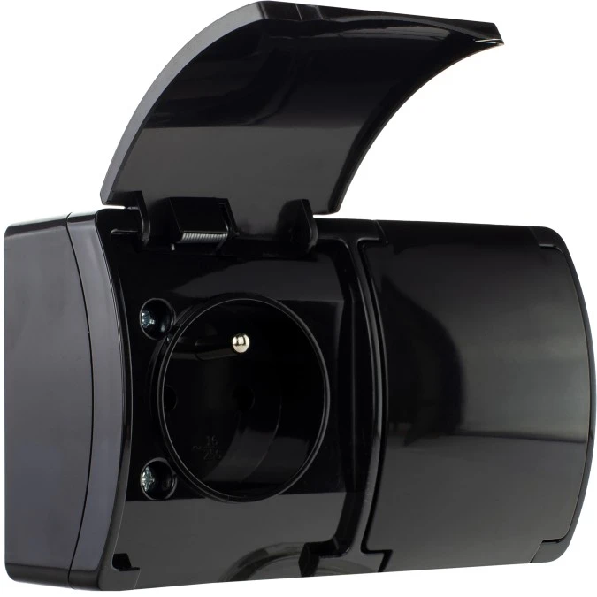 14. Koala gniazdo podwójne N/T z klapką IP44 czarne 29.85