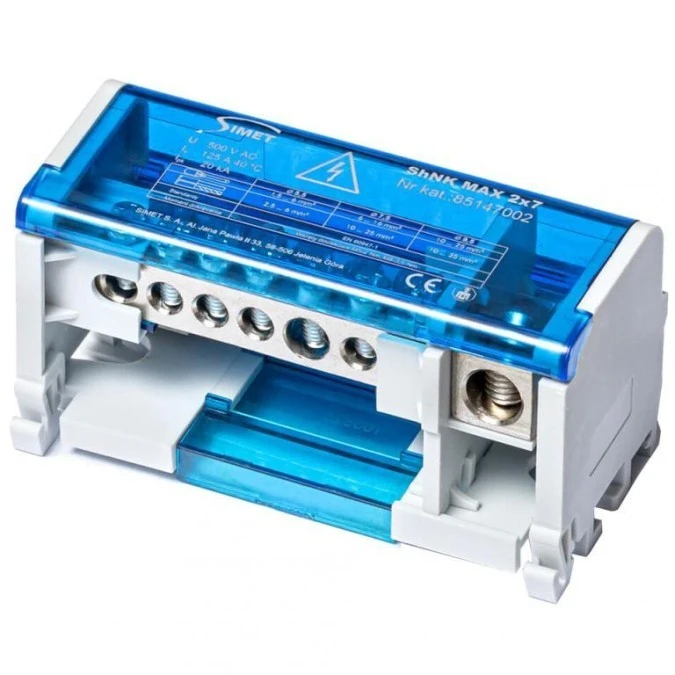 6. Blok rozdzielczy modułowy ShNK Listwa łączeniowa 2x7 125A na szynę DIN TH35 7x (1x 35mm2 + 1x 25mm2 + 5x 6mm2+) SIMET 73.86
