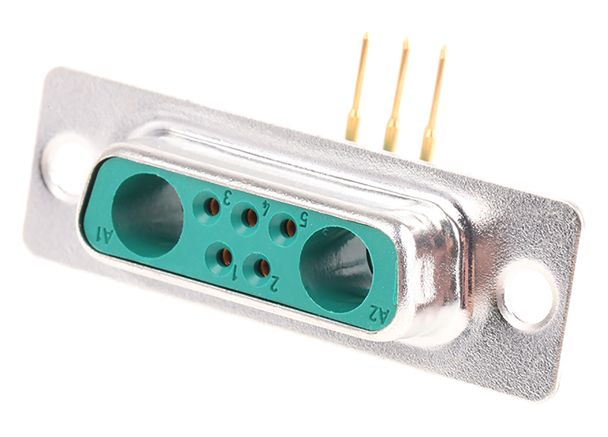 7. Złącze D-Sub 2 (Power/Coax), 5 (Signal)-pinowe Żeński Kąt prosty Przepust Złoto na niklu 46.72