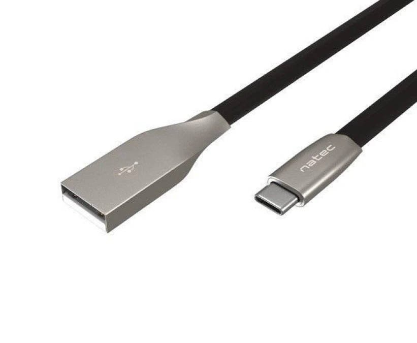 Kabel USB 2.0 A / USB typ-C (wtyk / wtyk) płaski czarny 1m