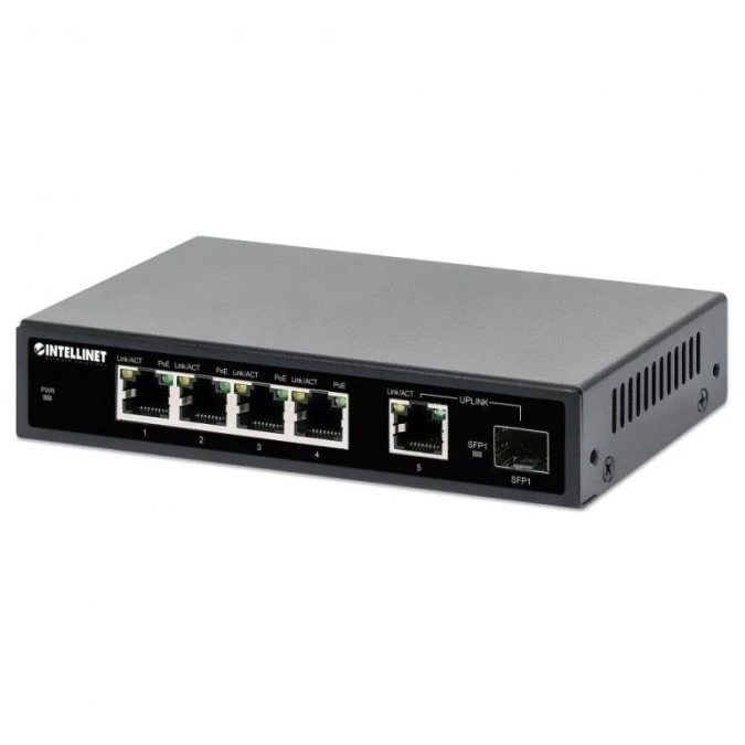 Switch Gigabit 4x RJ45 PoE+, 1x RJ45 Uplink, 1x slot SFP