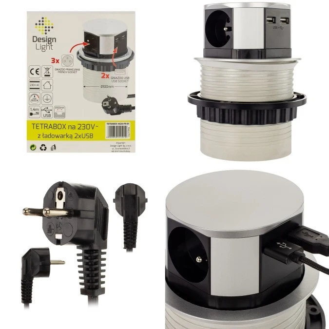 Gniazdo meblowe 3x2P+Z 2xUSB okrągłe 1,4m TETRA BOX