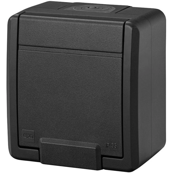 Gniazdo zasilające pojedyncze natynkowe hermetyczne IP55 antracytowe z klapką 2P+Z 16A Aquant 2K