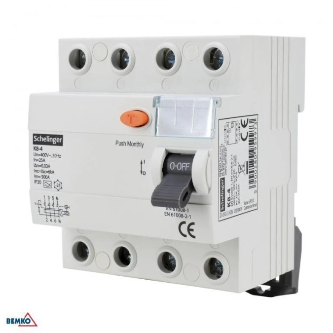 Wyłącznik różnicowoprądowy A 4P 63A 30mA Schelinger A03-K8-4-63-030