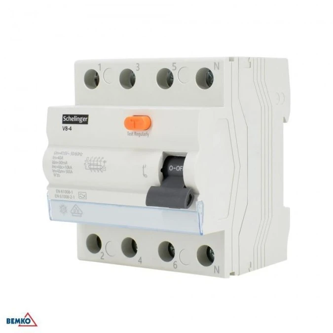 WYŁĄCZNIK RÓŻNICOWOPRĄDOWY A 4P 40A 30mA 10kA VDE SCHELINGER A03-V8-4-40-030