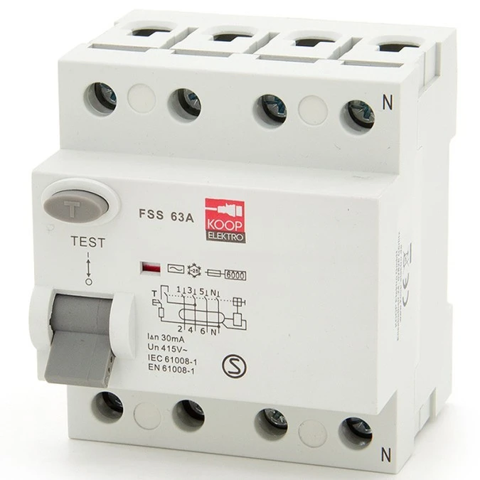 2. Wyłącznik różnicowo-prądowy, KOOP Elektro FSS 4P 63A Typ AC 75.08