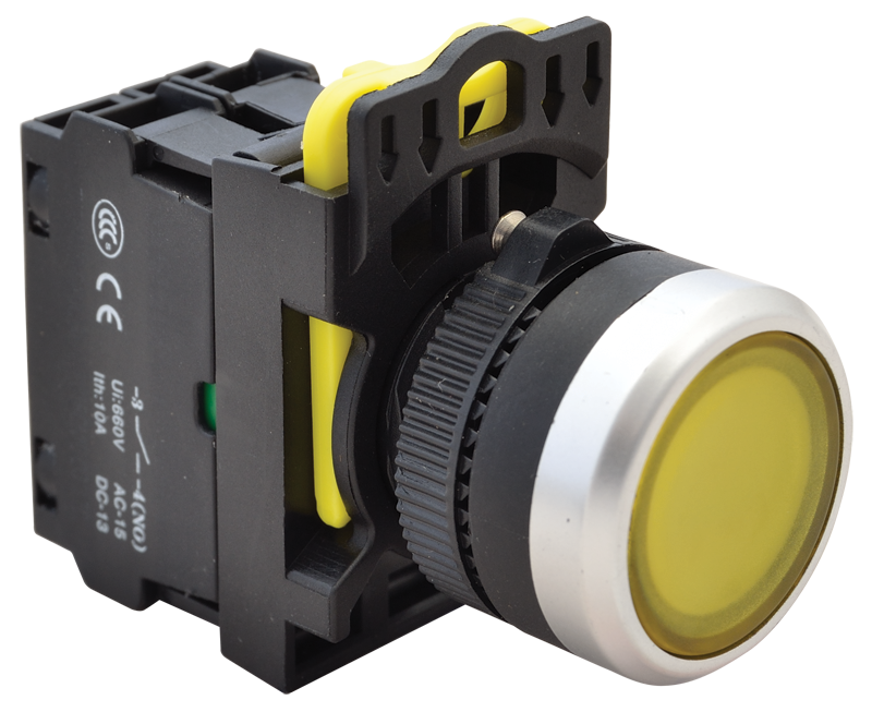 1. Przełącznik przycisk bistabilny sterowniczy podświetlony 22mm żółty Tracon 23.25