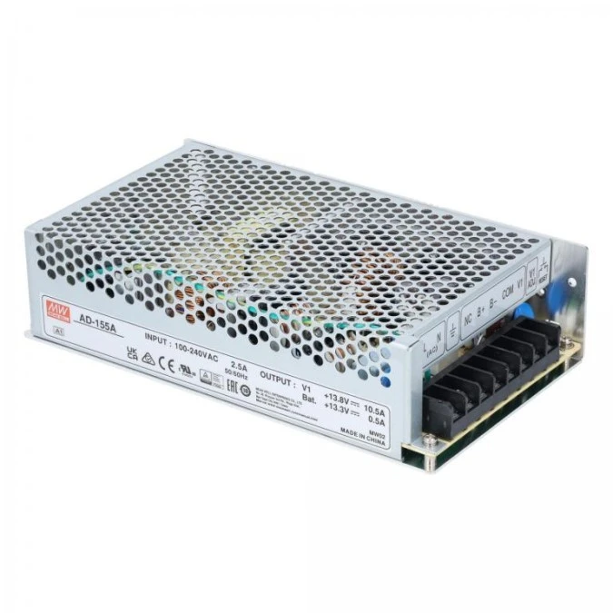 Zasilacz modułowy 13,8V 11,5A 155W uniwersalny buforowy AD Mean Well z wyjściem do ładowania akumulatora
