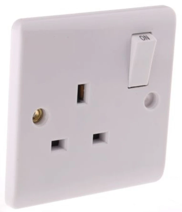 Gniazdo wtykowe Montaż wpuszczany z przełącznikiem kolor Biały W budynkach, 13A, IP20 230V ac