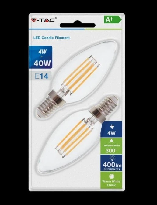 Żarówka Dekoracyjna LED FILAMENT VT-2174 4W E14 CANDLE 2700K 400lm A+ 300st. 7365