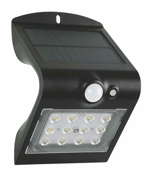 Kinkiet LED solarny 1,5W 4000K/neutralna IP65 z cz. zmierzchu i ruchu PIR aku. ABS/PC FOX SOLAR PIR 12LED B NW GXSO005