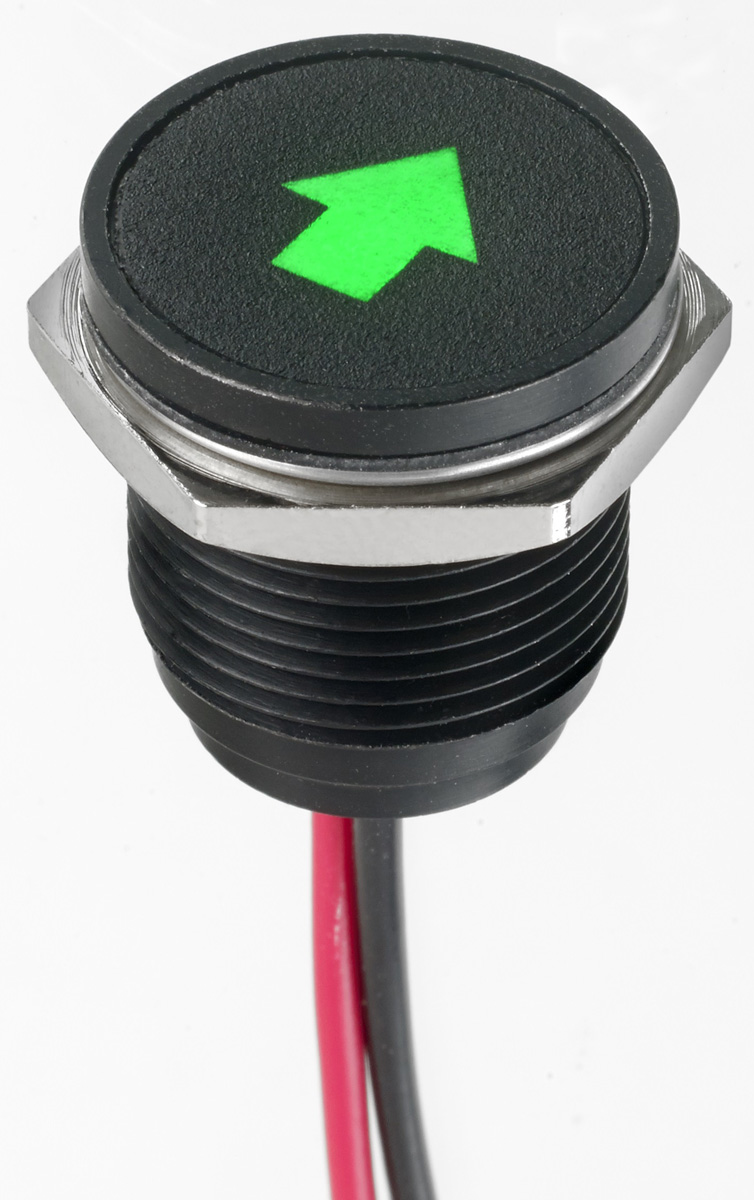 15. Lampka kontrolna do montażu panelowego 12V dc, zielona 16mm LED Czarny Wyprowadzenia APEM 129.19