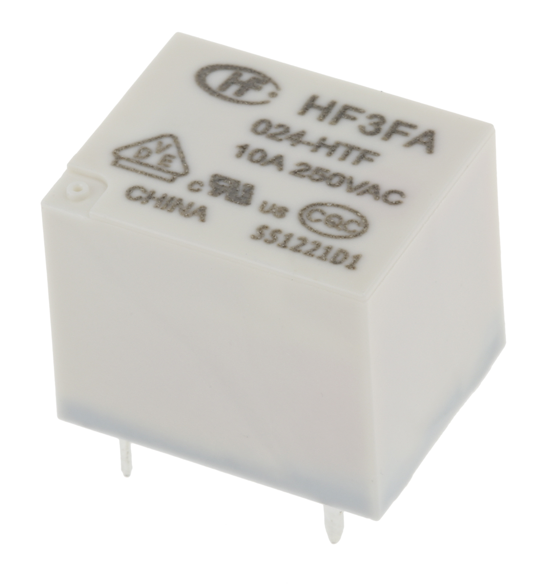 10. Przekaźnik mocy 24V dc SPST Hongfa Europe GMBH 15 A 360mW, montaż PCB 1600Ω Styk płytki drukowanej 7.34 x5