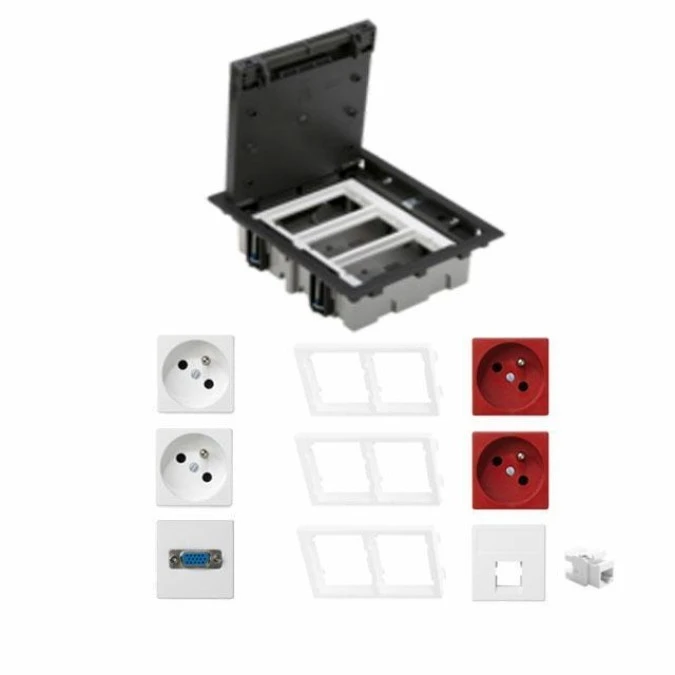 KONTAKT SIMON FLOOR BOX puszka podłogowa 1x gniazdo pojedyncze z/u + 1x gniazdo DATA + 1x gniazdo RJ45 kat. 6 + 1x VGA + kaseta