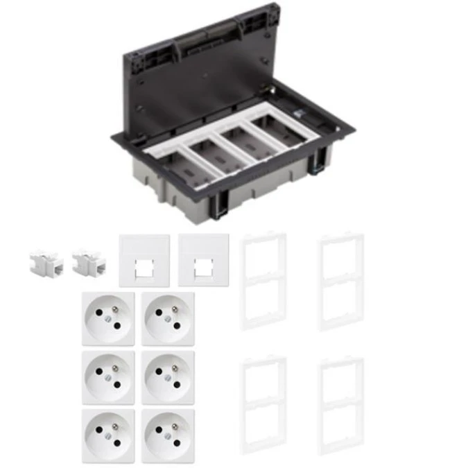 KONTAKT SIMON FLOOR BOX puszka podłogowa 4x gniazdo z/u + 2x DATA + 2x gniazdo RJ45 kat. 6 nieekranowane do podłóg technicznych
