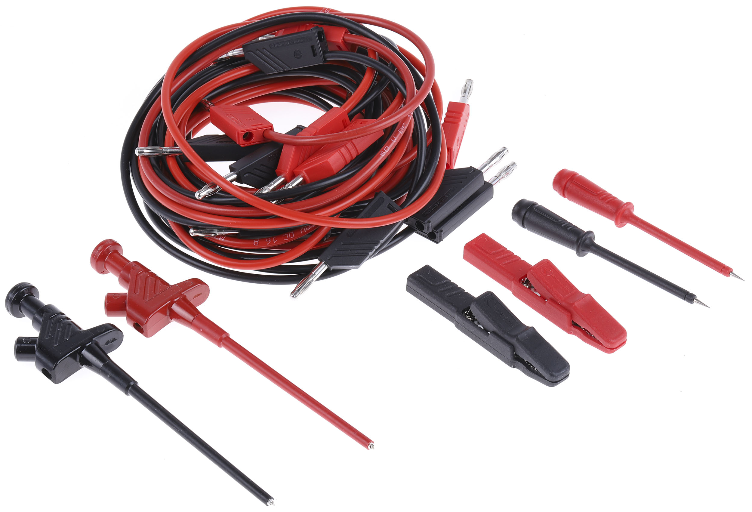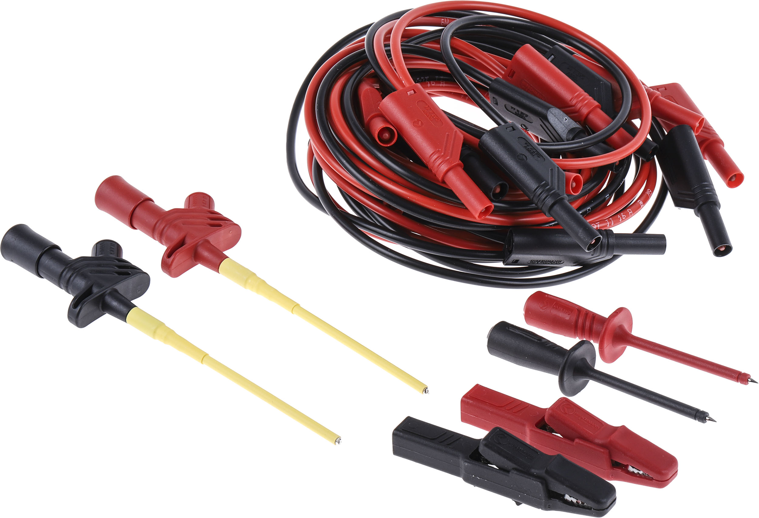 Zestaw przewodów pomiarowych, zawartość: Sonda pomiarowa zaciskowa, zacisk krokodylkowy, przewód pomiarowy, sonda