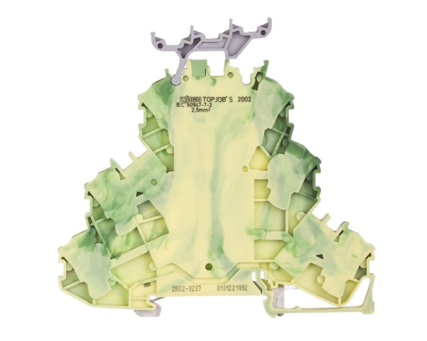 Złączka szynowa 3-piętrowa PE 2,5mm2 z podstawą oznacznika żółto-zielona 2002-3237 TOPJOBS