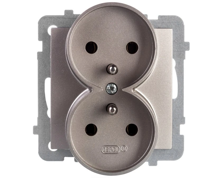 4. AS Gniazdo podwójne z uziemieniem z przesłonami torów prądowych moduł bez ramki satyna light GP-2GRZP/m/45 OSPEL 25.23