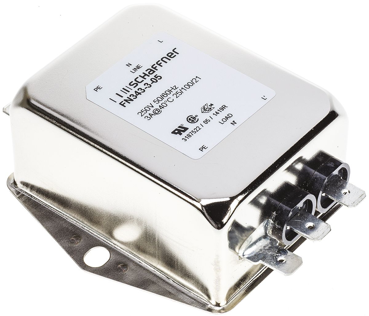 5. Filtr EMI 3A 1-fazowy 1MΩ 250 V AC 400Hz 1,1 mH, 2 mH, 400 μH Schaffner Montaż w obudowie 290.81