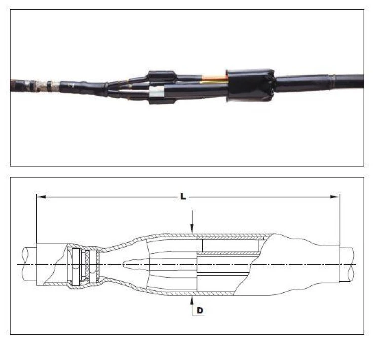 Mufa przejściowa nn 1kV termokurczliwa TRAJ-01/4X25-70/4SB wraz ze złączkami śrubowymi dla kabli 4-żyłowych tworzywo-papier - TE