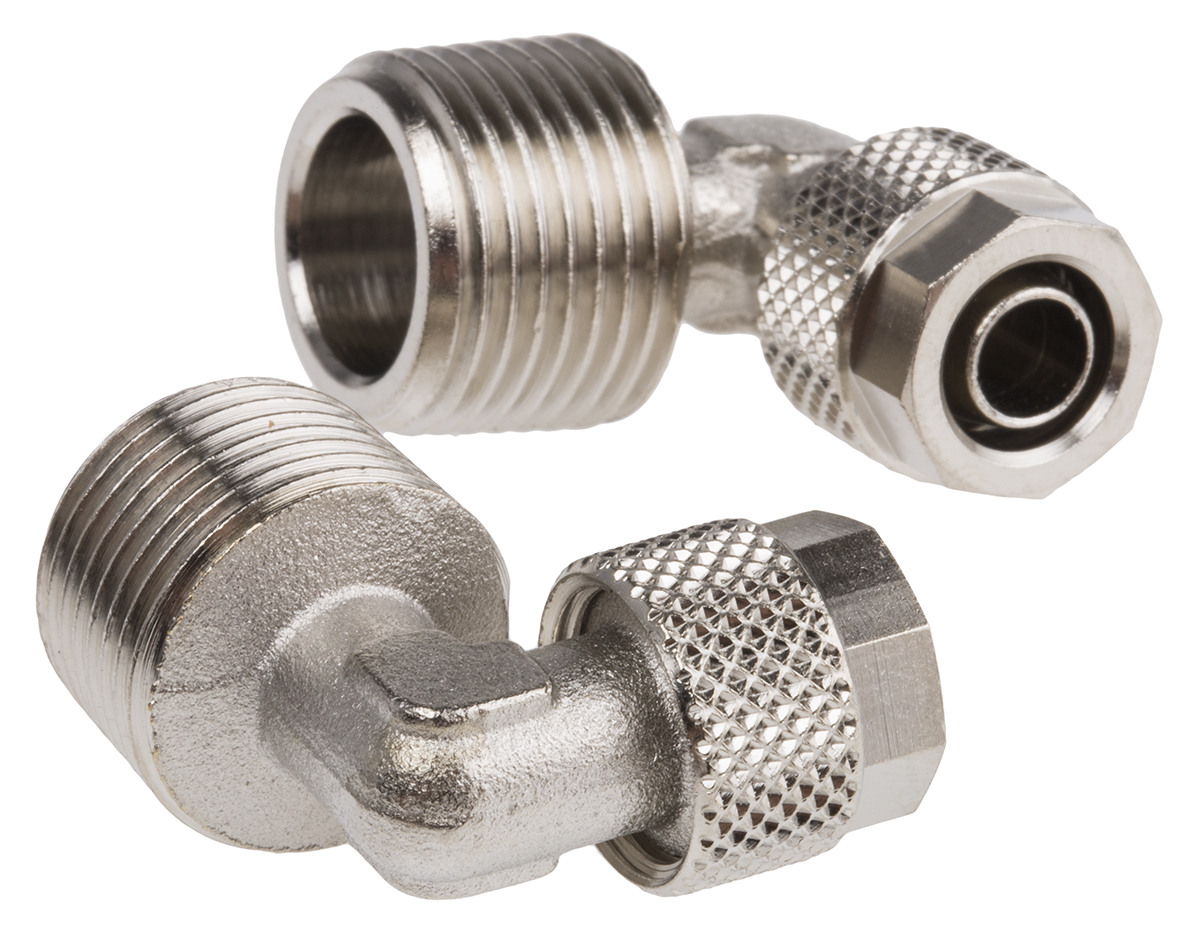 3. Złączka pneumatyczna R 1/4 męskie Wciskane 8 mm RS PRO Adapter gwintowany kolankowy R 1/4 męskie 72.91