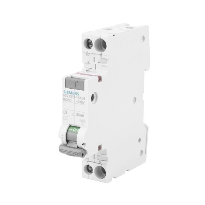 4. Wyłącznik różnicowo-nadprądowy 2P C 6A 0,03A Typ AC 6kA 630mA SENTRON 5SV1316-1KK06 278.58