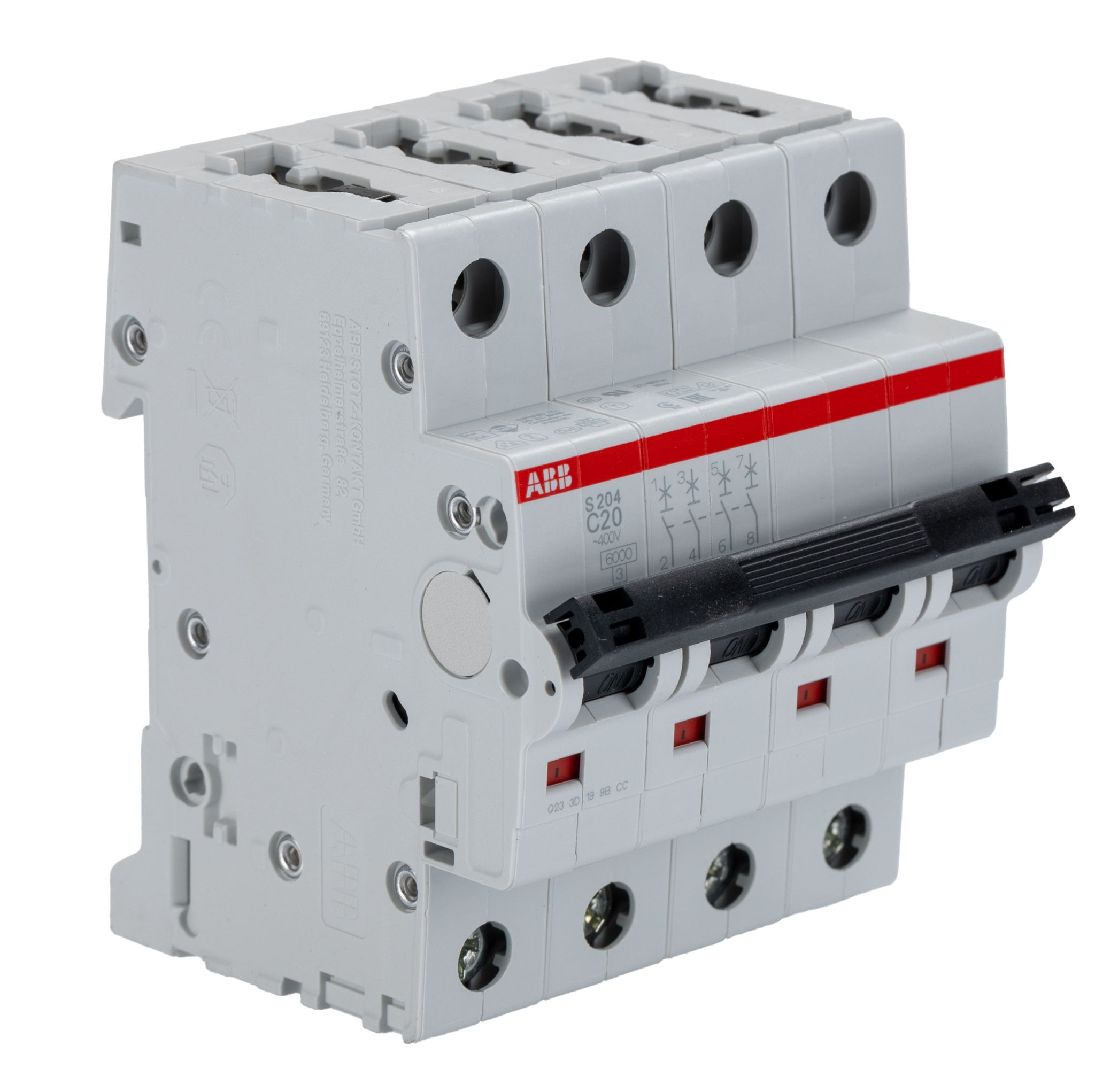 6. Wyłącznik nadprądowy MCB, Typ C, 4-biegunowy, 20A, 400V, na szynę DIN, ABB S204-C20, S200 996.76