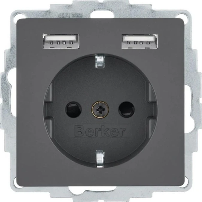 K.1 Gniazdo schuko z gniazdem ładowania USB 2,4 A samozaciski antracyt mat 48037006 HAGER