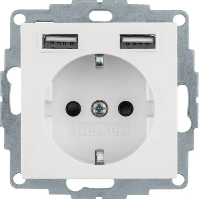 B.3/B.7 Gniazdo z uziemieniem SCHUKO z ładowarką USB A +C 2.4/3.0 A samozaciski biały mat 48041909 HAGER