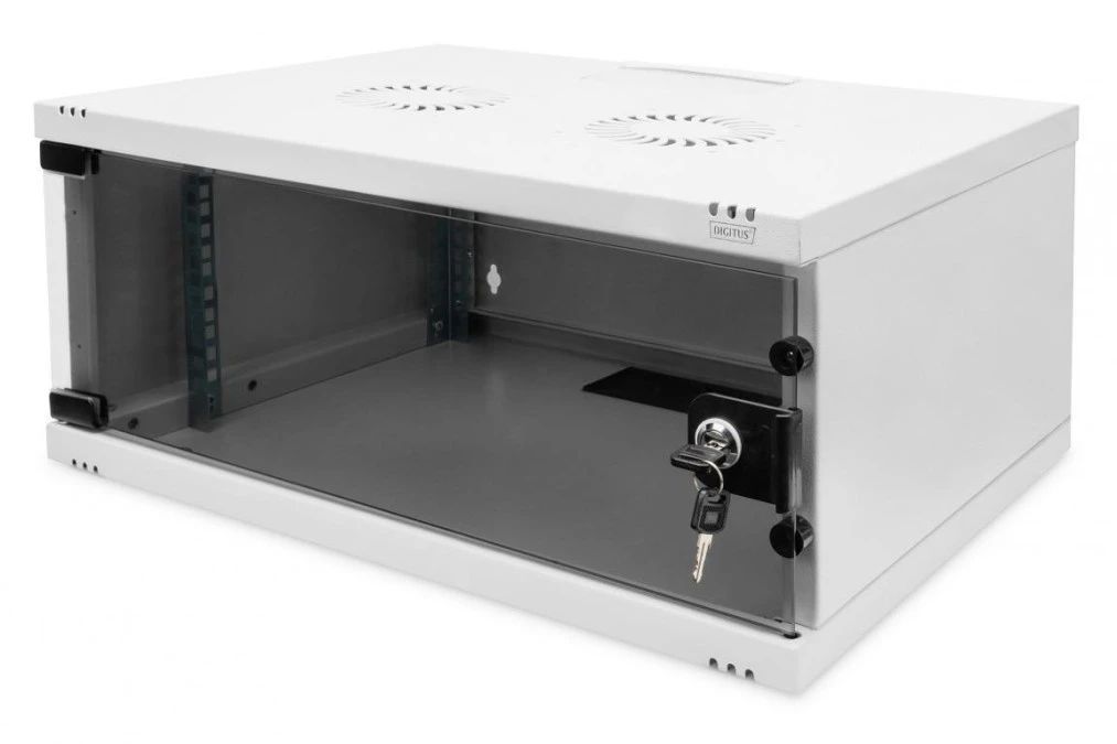 Szafa sieciowa wisząca 19 4U, SOHO 241 x 540 x 400 mm, drzwi szyba, szary, niezłożona, 60kg DN-38010