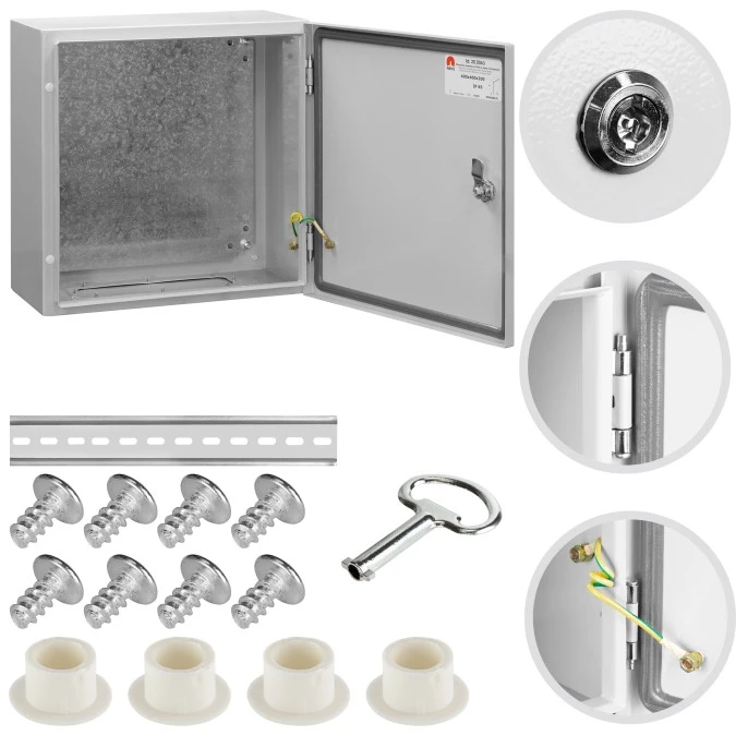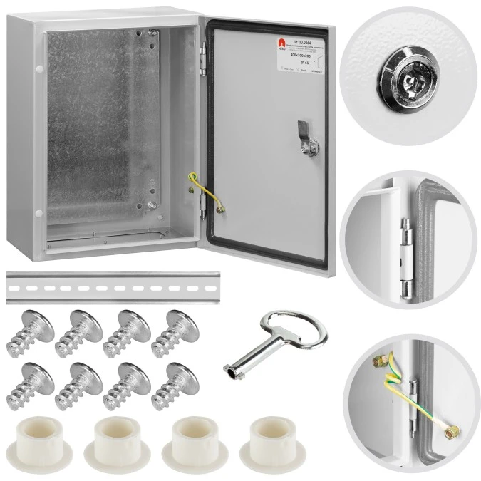 8. Obudowa hermetyczna rozdzielnica metalowa z płytą montażową 400x300x200 IP65 natynkowa NEKU 194.28