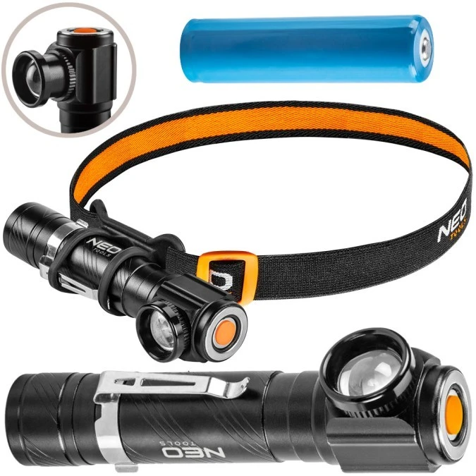 Latarka czołowa akumulatorowa LED 10W 800lm z funkcją zoom NEO 99-026