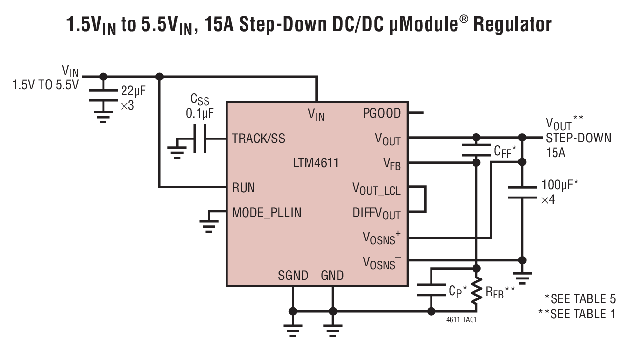 Ultralow V, 15A DC/DC μModule (Power Module) Regulator