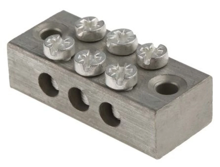 Listwa zaciskowa uziemienia, 0 → 16 AWG, l. żył: 3, zakończenie: Wkręcane, Mosiądz