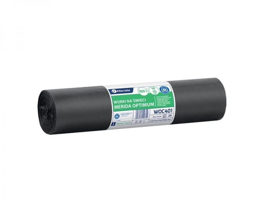 MERIDA WOC401 worki na śmieci mocne 160 l 90 × 110 cm czarne LDPE – rolka 25 szt