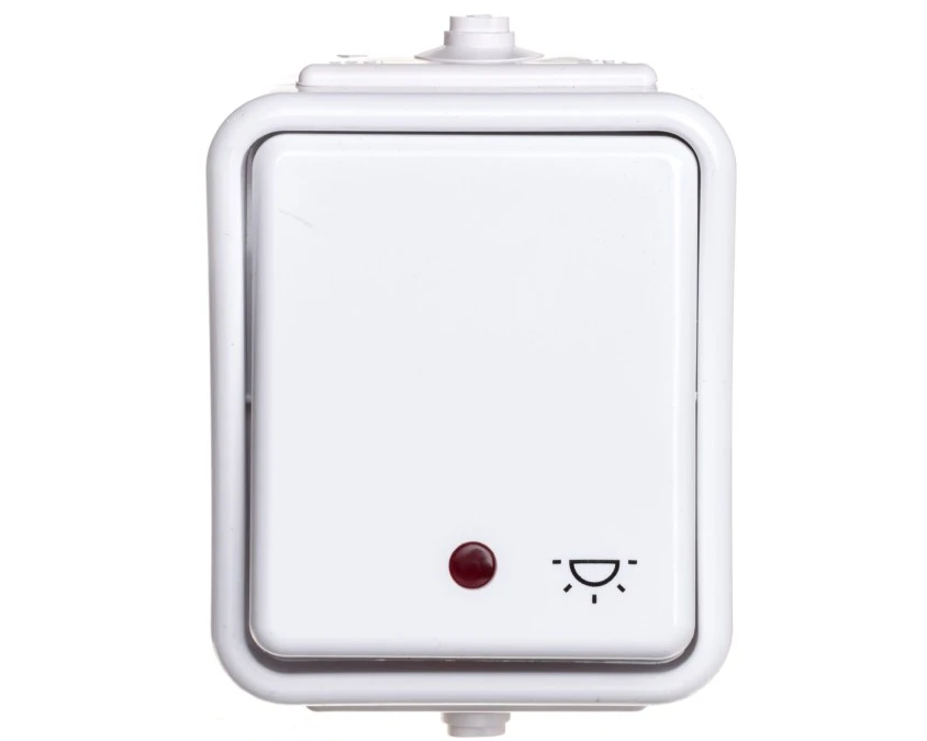 Cedar Przycisk hermetyczny IP44 światło z podświetleniem 10A biały IP44 WNt-102CS WNT102CS01