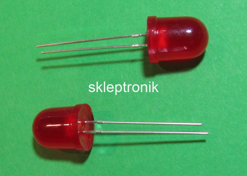 1. Dioda led 10mm czerw. dyfuz. 1500mcd 5szt 3.60